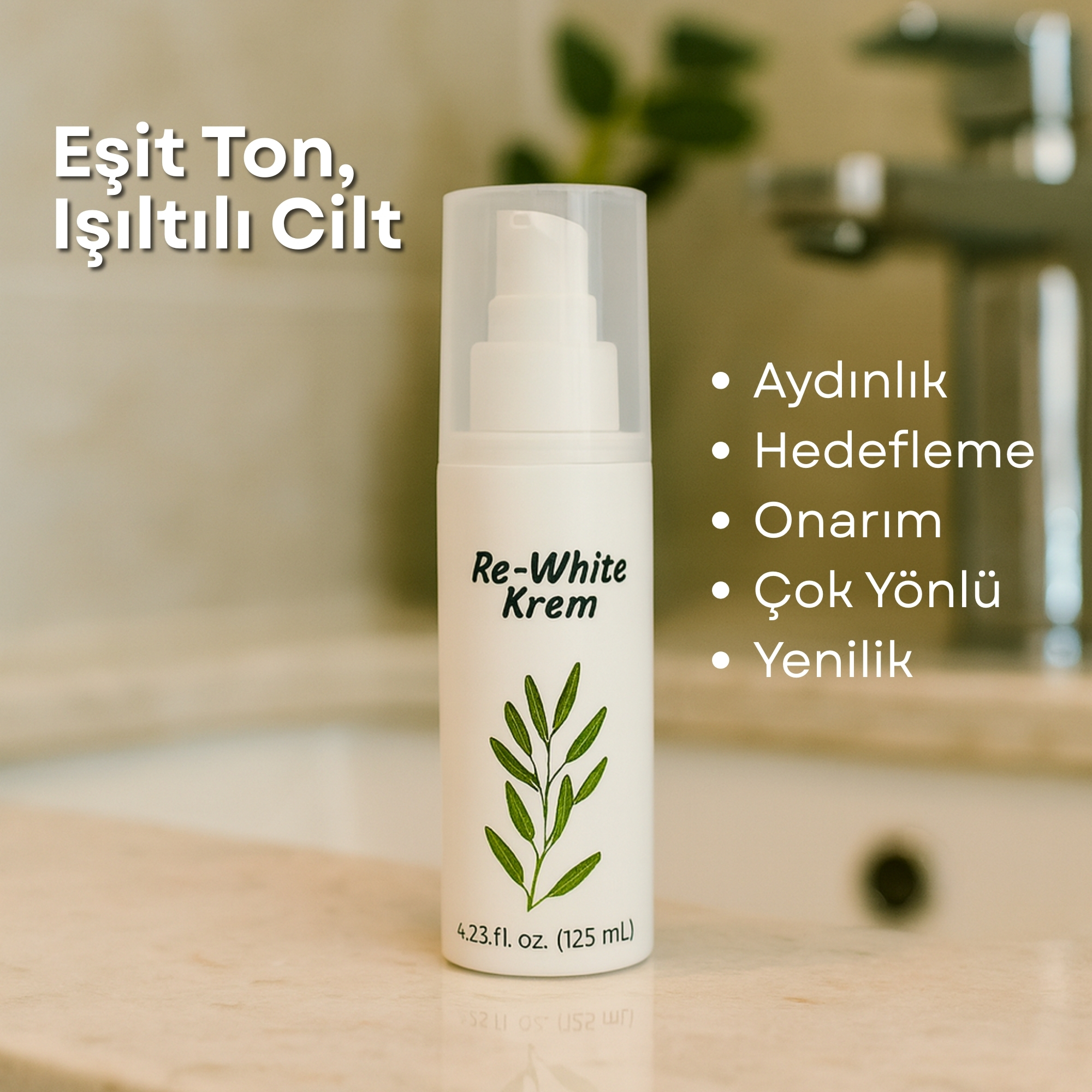 Türkiye’de ilk kez ecocert organik sertifikalı etkinliği bilimsel çalışmalarla kanıtlanmış Gigawhite doğal aktifinin(Tam 7 farklı renk açıcı bitki karışımından oluşur) ekstra 9 farklı bitkisel aktif ile bir araya getirilmesi ile oluşmuş benzersiz özgün ve etkili ürünümüz Naturaren re white kremi kullanımlarınıza sunmaktan onur duyuyoruz. Kujik asit içermeyen, cildinizdeki renk eşitsizliklerini hedef alan Naturaren Re-White Krem, ödüllü ve özgün formülüyle cildinize nazik bir bakım sunar. Doğal içeriklerle geliştirilmiş bu yenilikçi krem, üç farklı etkinlik mekanizmasına sahiptir; tirozinaz inhibisyonu,promelanozom proteini-17 baskılanması ve melanoregülin azaltılması prosesleri sayesinde yüz ve vücut dahil olmak üzere cildinizin tüm bölgelerine uygun bir çözüm sağlar.